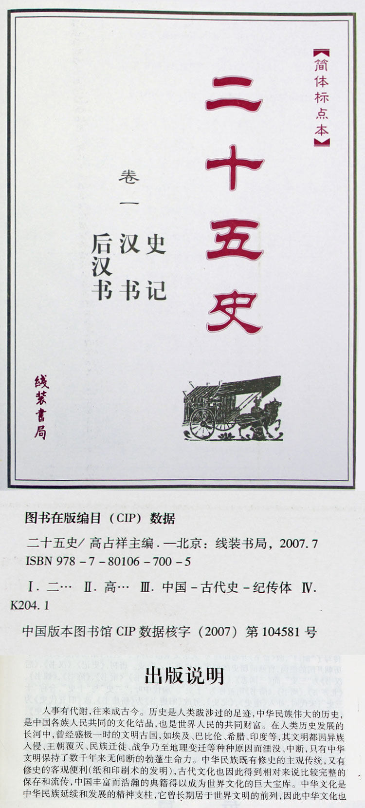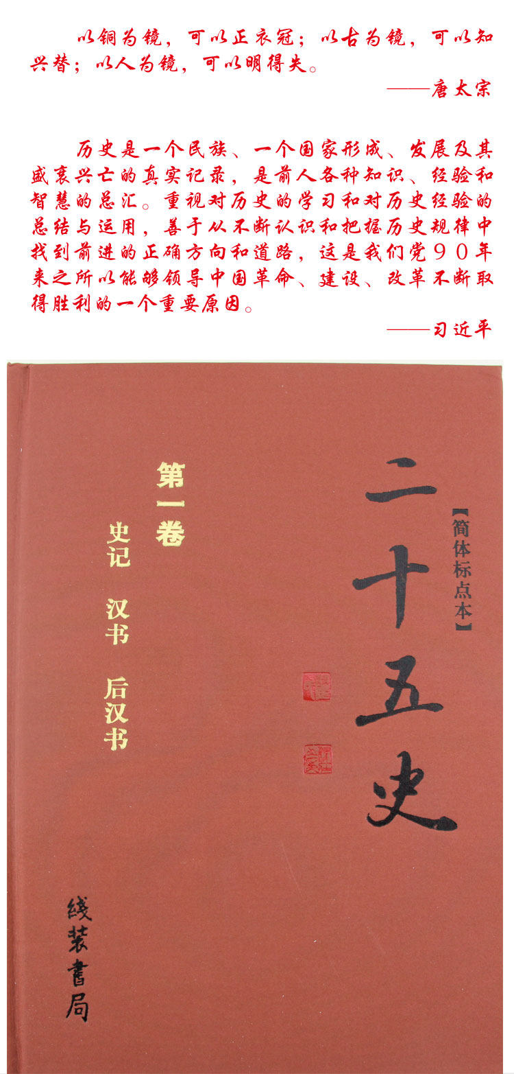 书名:二十五史(简体横排标点本) 编者:(西汉)司马迁 (东汉)班固 出版社:线装书局 出版时间:2011年7月出版 册数开本:全30册 16开布面精装 ISBN:9787512004030定 价:11800 书 重:60公斤
