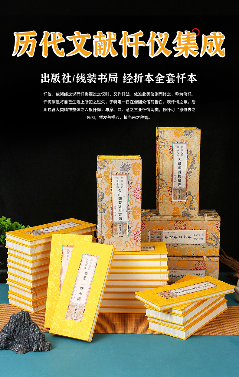 历代文献忏仪集成 折本48册龙纹绸面大字 观音忏 三昧水忏 梁皇宝忏 地藏经 地藏忏